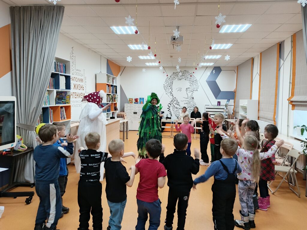 Детская библиотека «Маяк» пригласила своих юных читателей на новогоднее развлечение. Лесная красавица Ёлочка решила подарить всем волшебное праздничное настроение и устроить для детей шоу. Но разбойники захватили артистов. Что же делать? Не отчаиваться! На помощь пришла подружка Снеговичка. Сказочные герои и дети объединили силы, чтобы вернуть праздник и устроить самое веселое, яркое и сказочное шоу. Ребята поучаствовали в веселых конкурсах, потанцевали и попели новогодние песни. Завершился праздник радостной новостью – Дед Мороз освободил артистов и поблагодарил детей за то, что они смогли устроить себе такой яркий праздник. «Ёлкино шоу» подарило ребятам много радости, улыбок и хорошего предновогоднего настроения!