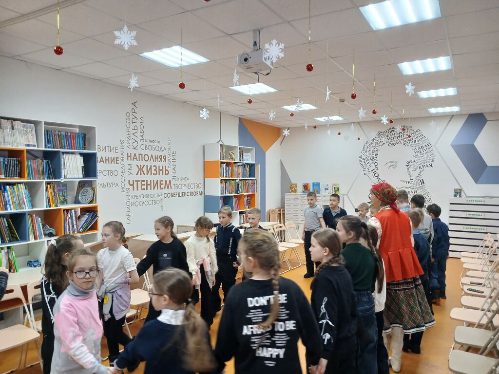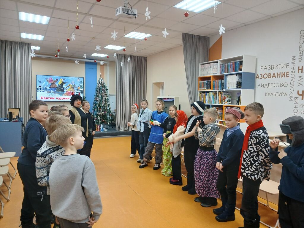 Святки или, как их ещё называют, Святые вечера – это зимний народный праздник, который начинается на Рождество и длится целых две недели, до самого Крещения. Нет ни одного другого праздника на Руси, который бы сопровождался таким богатым набором обычаев, примет, обрядов. Детская библиотека «Маяк» подготовила для обучающихся начальных классов школ города фольклорно-игровую программу «Святки – чудная пора». Участники мероприятия погрузились в атмосферу старинных русских традиций. В гости к ребятам пришёл один из самых любимых святочных персонажей – смешной Чёртик. Вместе с хозяйкой праздника они рассказали детям о том, как раньше отмечали эти дни: колядовали, гадали, пели песни и устраивали народные гуляния. Особое внимание было уделено колядкам – обрядовым песням, которые исполнялись в честь хозяев дома, желая им здоровья, богатства и благополучия. Захватывающим моментом праздника стали гадания, которые, по поверьям, помогали заглянуть в будущее. Таинственные гадания сменялись весёлыми играми. Гости старались допрыгнуть до Луны и состязались в перетягивании каната. Словом веселились от души. Много добрых слов и щедрых пожеланий прозвучало на празднике. Счастливые лица ребят, веселье и радость, говорили о том, что праздник удался.