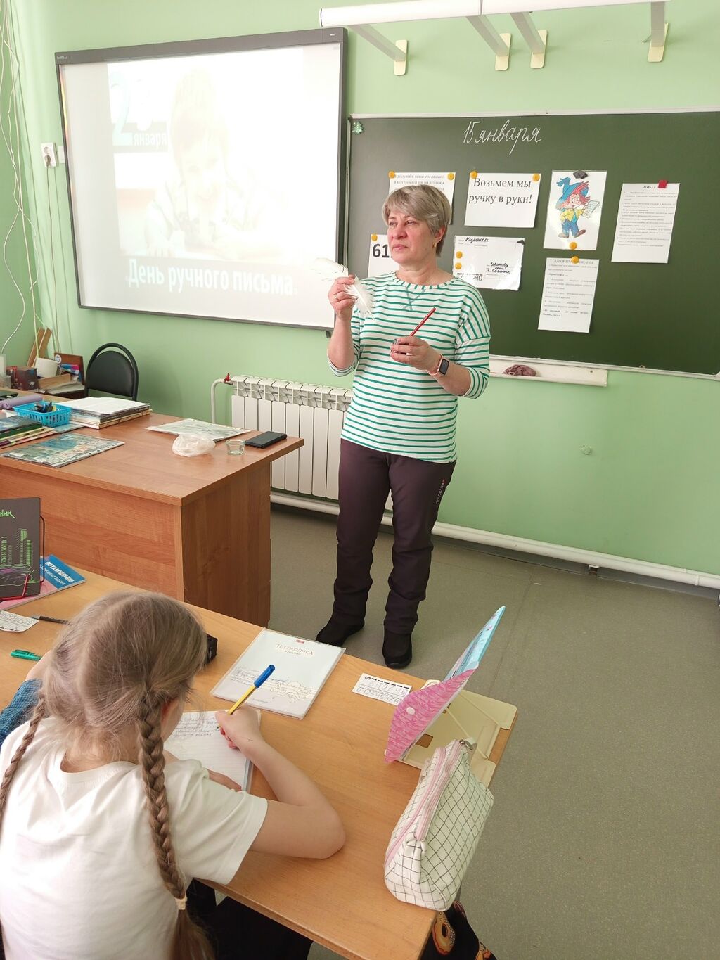 Для обучающихся 3 «Б» класса городской школы №2 состоялся познавательный час ко Дню ручного письма. К ребятам в гости пришел Незнайка с просьбой о помощи. Он хотел поздравить своего друга с Новым годом, но не знает, как это сделать ведь интернета и сотового телефона у него нет. Дети подсказали, что нужно написать письмо. В ходе беседы ребята и Незнайка узнали, как правильно писать письмо соблюдая этикет и алгоритм, какой путь проделывает письмо к получателю. Также узнали, что почерк Пушкина принято называть «скорописью», Лермонтов часто менял почерк, а почерк Льва Толстого могла разобрать только его супруга, потому что писатель использовал условные знаки. Познакомились обучающиеся с такими понятиями, как размер, наклон, форма и направление букв, сила нажима на пишущий инструмент, характер написания слов. Поговорили о пользе ручного письма. В практической части ребята писали индекс нашего города специальным шрифтом и письмо первой учительнице.