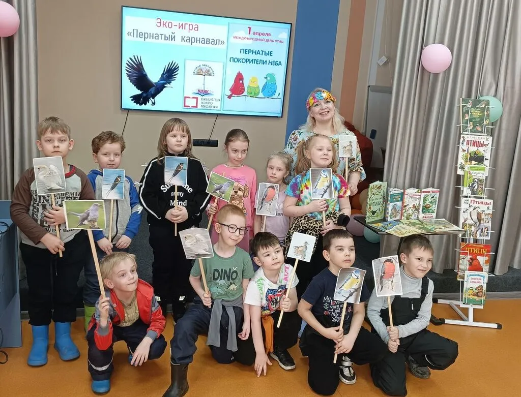 Дошкольники посетили веселую и познавательную эко-игру «Пернатый карнавал». К детям пришла Весна, которая провела игру «ручеёк» и эко-игру про птиц. Ребята узнали о разнообразии птиц нашей страны, их роли в жизни человека. Особое внимание уделили охране пернатых: рассказали о необходимости бережного отношения к птицам. Дети отгадывали загадки и отвечали на вопросы викторины, угадывали какая птица как поёт, складывали картинки, на которых изображены скворцы в скворечнике и даже читали стихотворения про разных птичек.Игра прошла весело и интересно. Дети ушли довольными с мероприятия, они унесли с собой хорошее настроение и знания о пернатых .